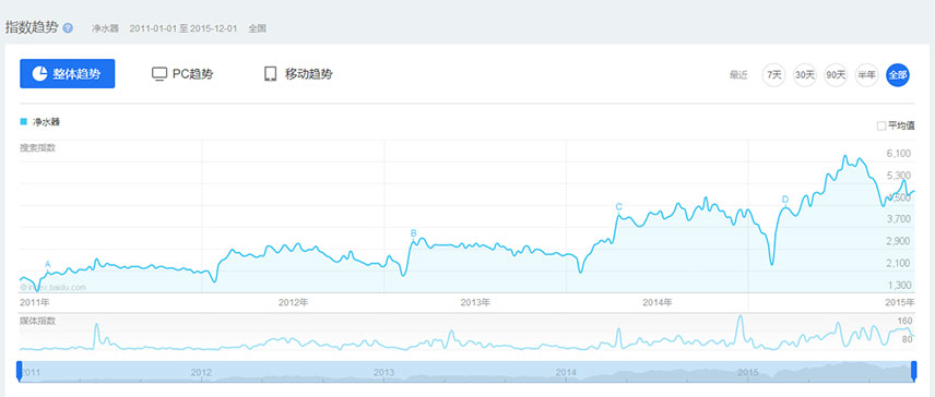 凈水器行業平均每年增長幅度45%,目前年銷售不到200億,預計在2020年銷售額超過一千億,最終形成超過5000多億的巨大消費市場。與家電、廚衛、建材、裝修、五金、桶裝水等行業接軌的凈水器,市場將越來越大。農村凈水器市場消費市場規模將造就一批水家電新貴。每年千萬套以上保障房建設將刷新凈水器市場增長點,形成新的市場規模。